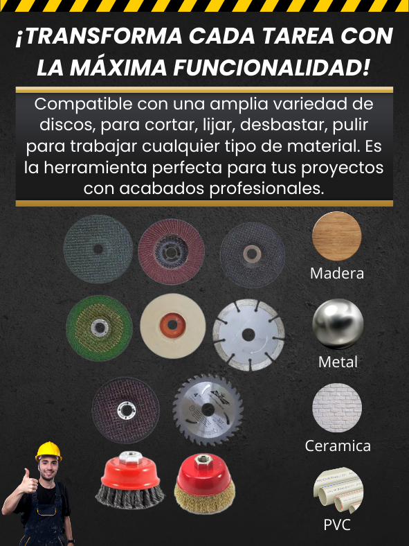 Es ideal para cortar madera, plásticos, tableros delgados y materiales similares, todo depende del disco que le instales.
